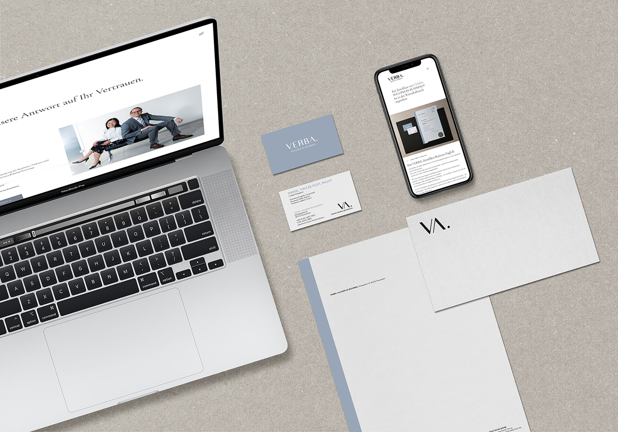 Ein Branding, das Sprache sichtbar macht. Klar, präzise und mit Charakter. Zeitlose Typografie trifft auf eine reduzierte Farbwelt – ein Look, der Professionalität ausstrahlt und Vertrauen schafft. Die digitale Präsenz? Geradlinig, intuitiv und auf den Punkt. So entsteht eine Marke, die Kompetenz vermittelt und in Erinnerung bleibt.